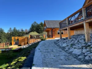 Którą rozłożono na dwukondygnacyjnej budowli wykonanej z najwyższej jakości drewna konstrukcyjnego.